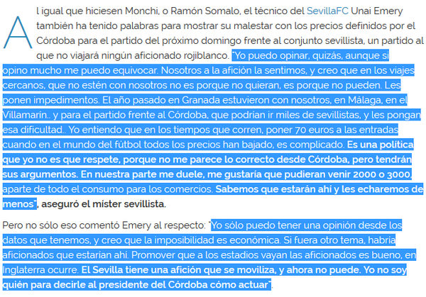 Las quejas de Unai Emery por el precio de las entradas del Córdoba - Sevilla FC
